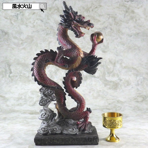 【風水3点セット】 龍の置物 風水 置物 玉持ち 水杯 水晶付き 人工水晶 龍 竜 銅製 5本爪 水杯付き インテリア オブジェ 置き物 金運アップ 商売繁盛 幸福 招き 御利益 成功 ラッキーアイテム 成就 新築 引っ越し 開店 祝い かっこいい 龍神 強運 辰 ドラゴン 【送料無料】