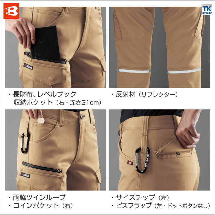 バートル BURTLE スタイリッシュ ストレッチ レディースパンツ 商品の 詳細 動作を快適にサポートするスーパーストレッチ素材(伸長率15%)。